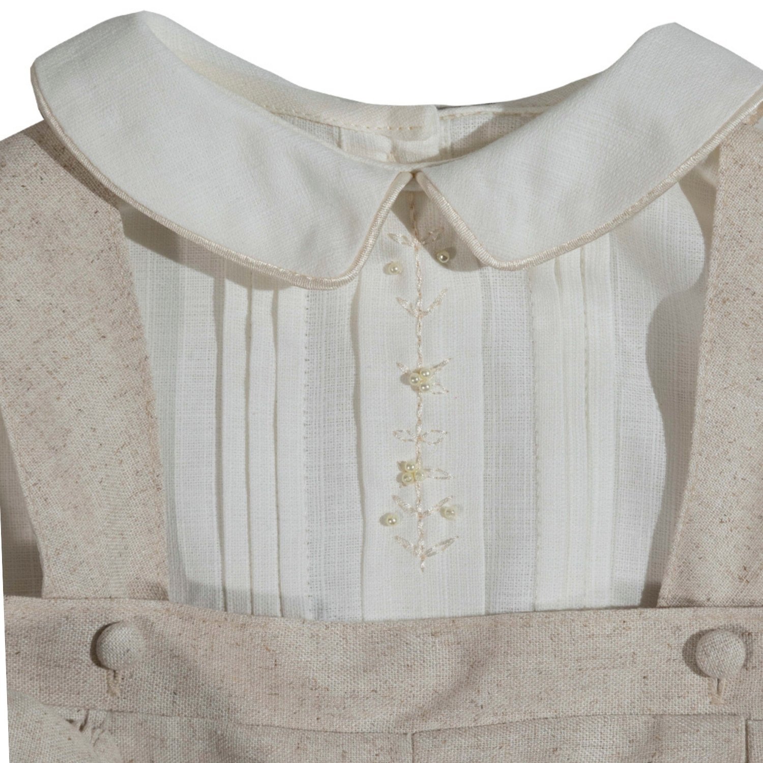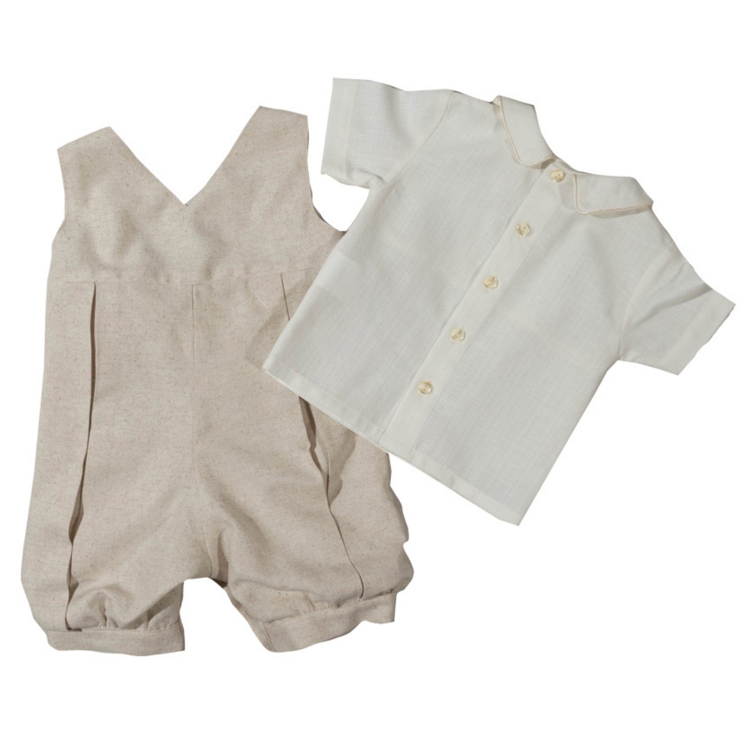Conjuntode camisa y jumper. Camisa elaborada en algodón 100% con textura de lino color off white.