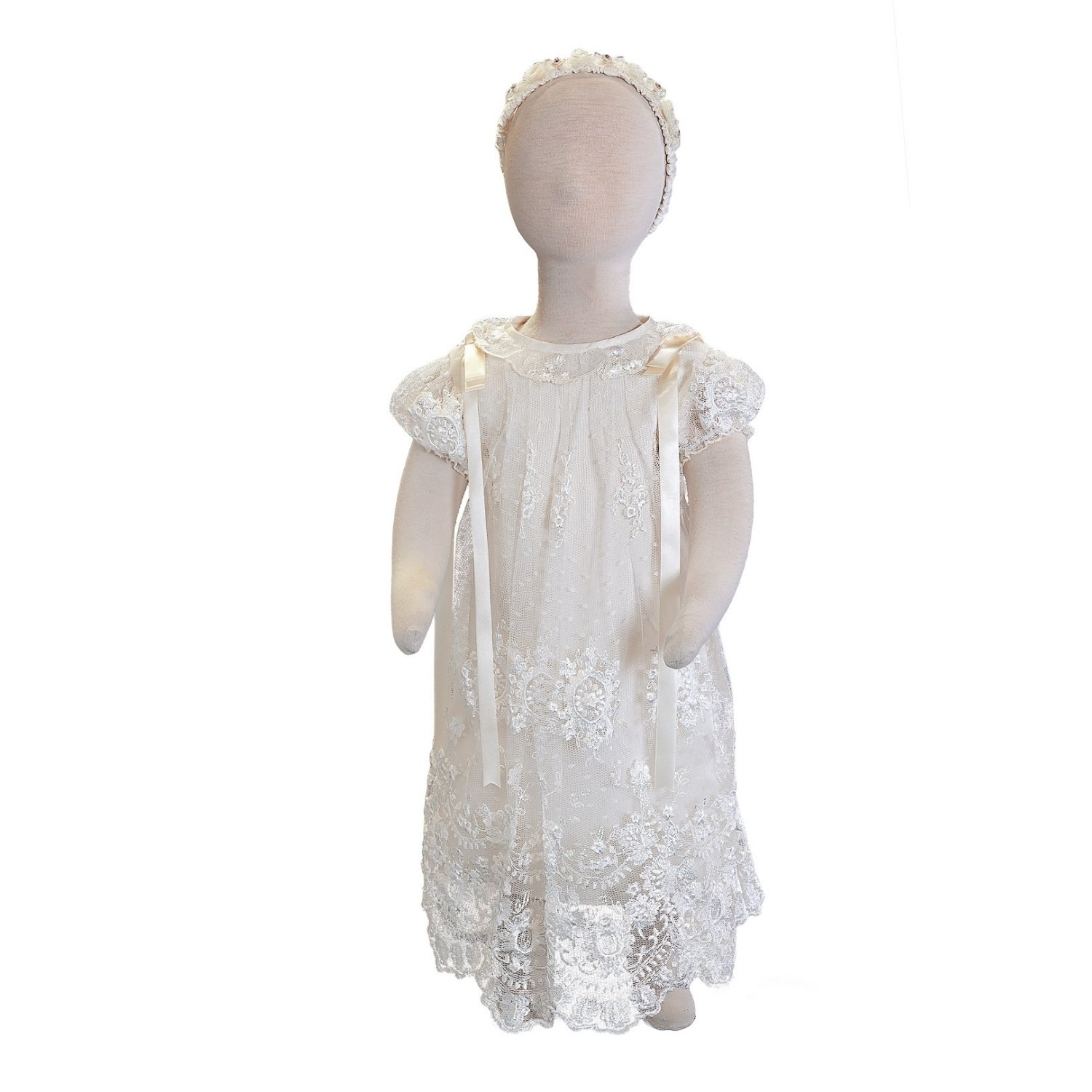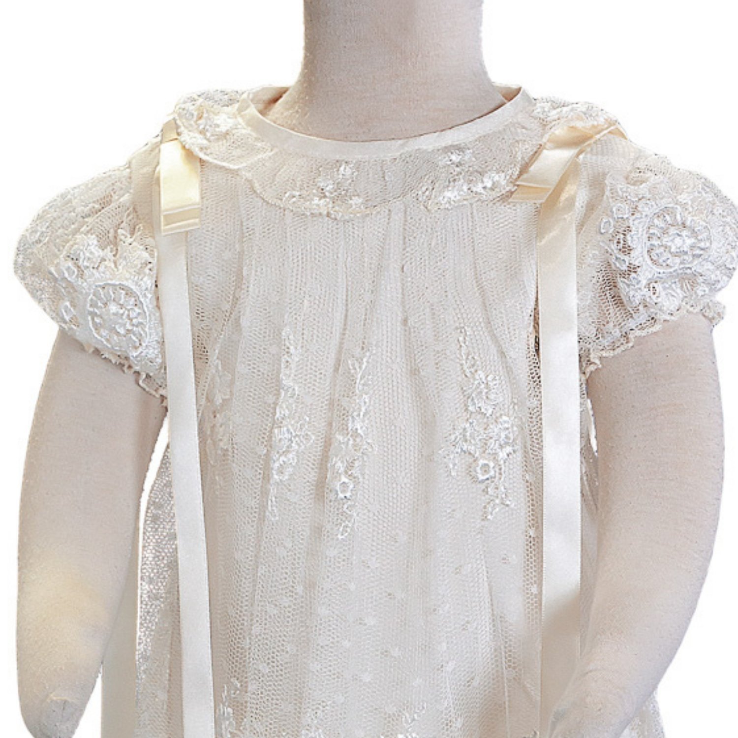 Precioso vestido elaborado en tergal, con alforzas elaboradas a mano y encaje,cosida en alta costura, libre de costuras que puedan molestar al bebé,