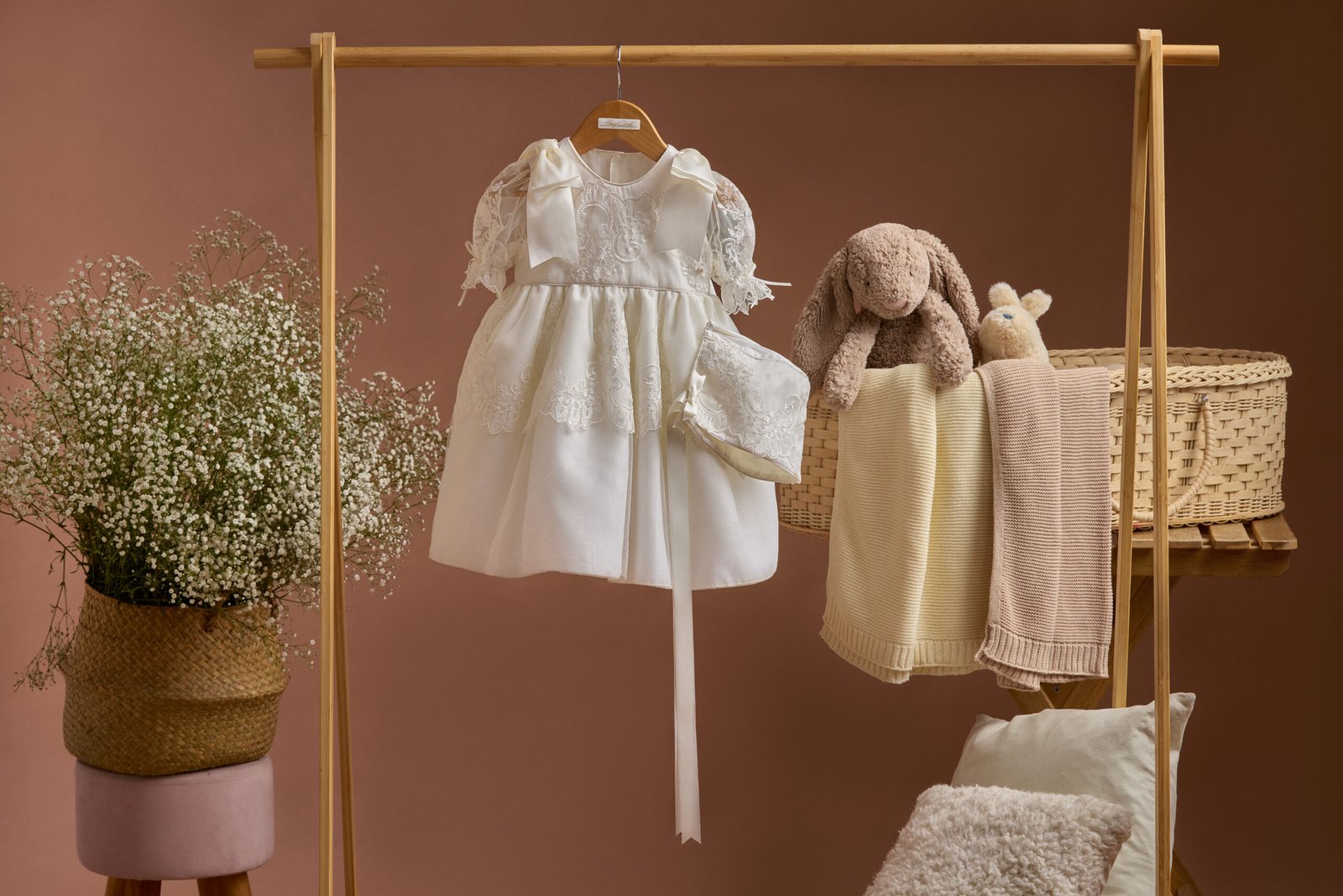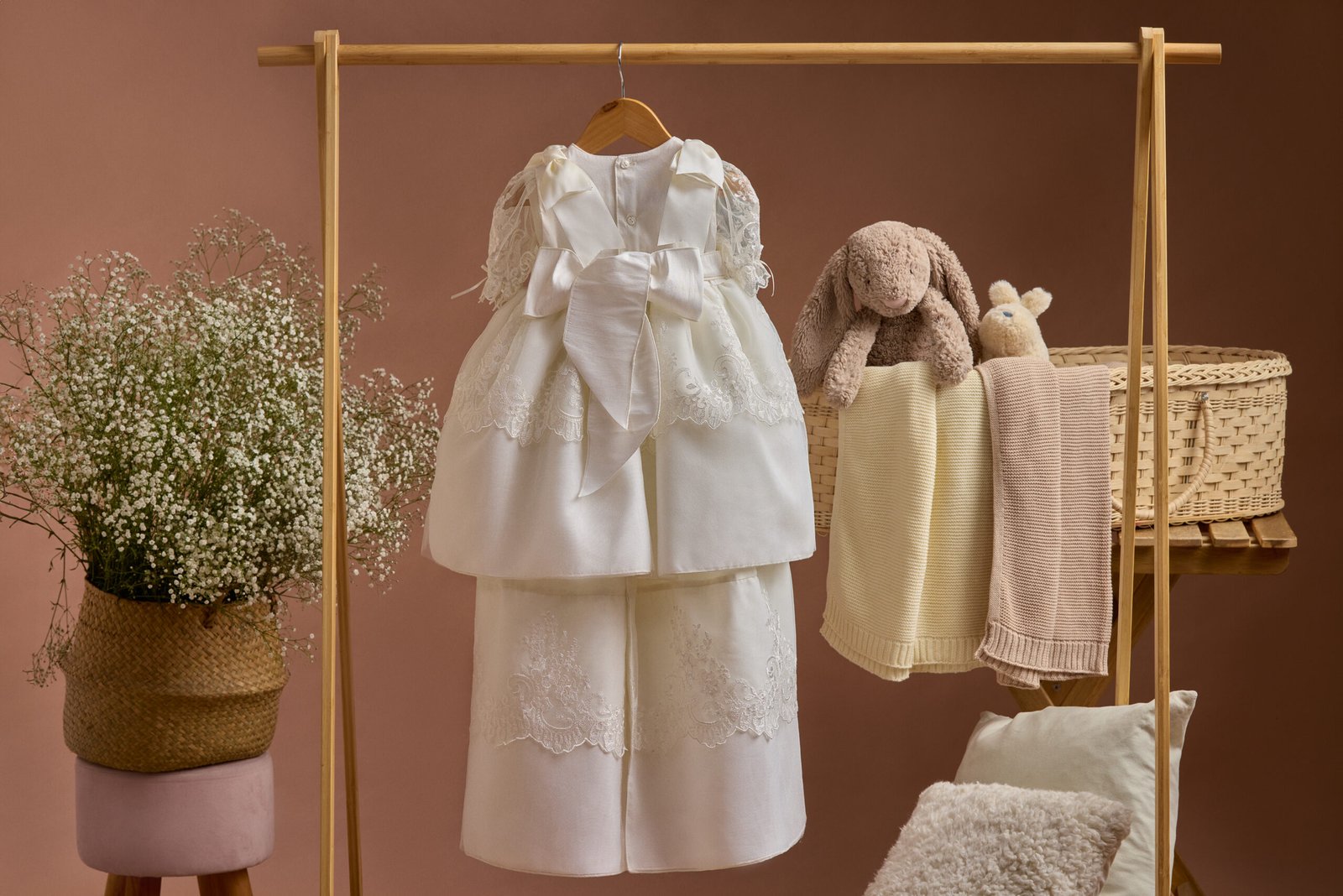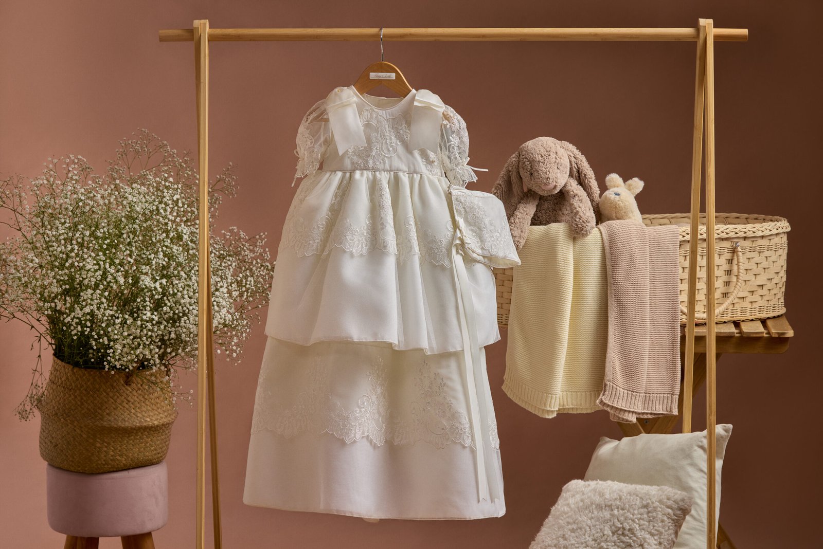 Después del bautizo, el vestido base puede usarse muchas veces, ajustándolo fácilmente con los lazos.